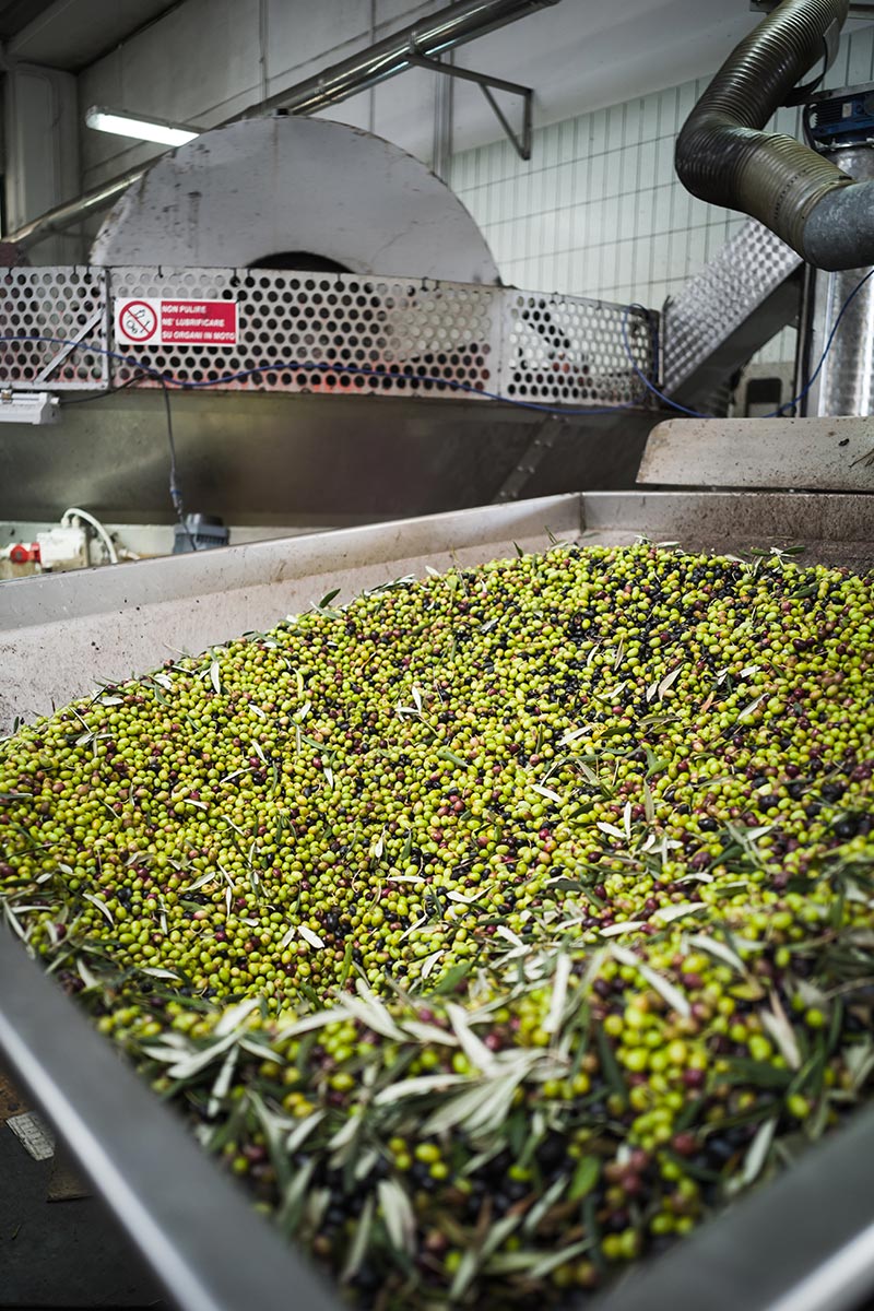 Una volta effettuata questa attenta pulizia, le olive sono pronte ad essere sottoposte al passaggio successivo: la frantumazione tramite massicce macine di granito. Questo processo nelle gramole è straordinariamente rapido, per evitare qualsiasi possibile ossidazione delle olive. Il risultato è una densa pasta di olive, che viene poi immessa in vasche con una capacità massima di 600 kg, dove subirà ulteriori passaggi di gramolatura, mantenendo una costante temperatura controllata.
